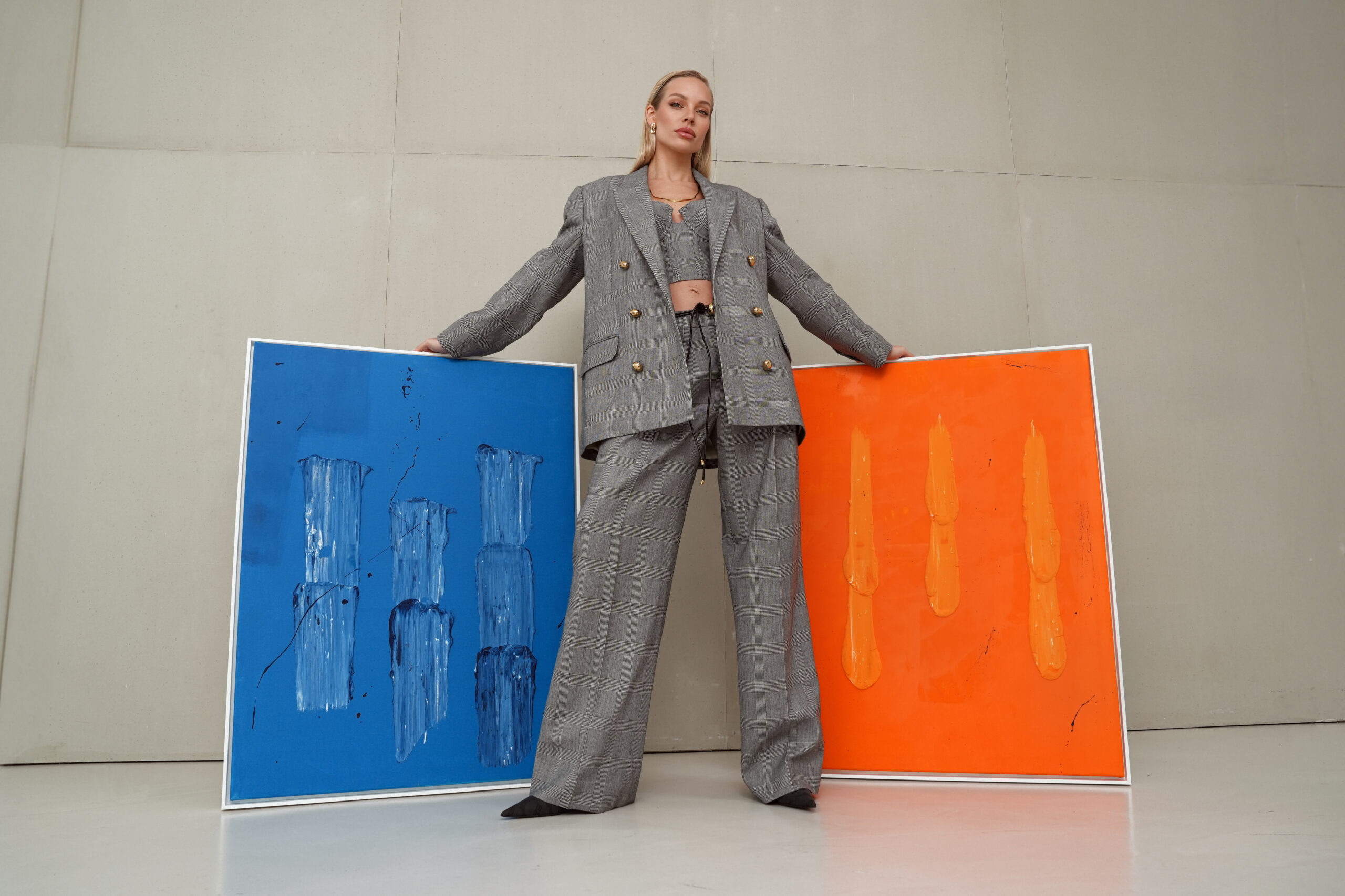 Today, I live in two worlds: art and fashion. As a model in front of the camera, I get to embody aesthetics and expression, while in the studio, I bring my innermost emotions to life through color and form. For me, these two fields complement each other perfectly—both allow me to tell stories and express my personality in a variety of ways.